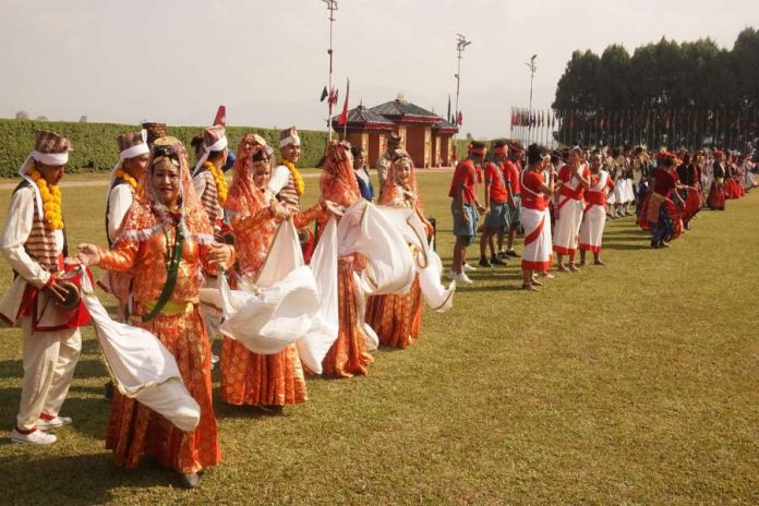 उनको स्वागत तथा सम्मानमा विमानस्थलमा कलाकारले प्रदेश नं १ को मारुनी, प्रदेश नं २ को झाँगड, प्रदेश नं ३ को तामाङसेलो, गण्डकी प्रदेशको कौरा, प्रदेश नं ५ को टप्पा, कर्णाली प्रदेशको थकाली र सुदूरपश्चिम प्रदेशको हुड्केली गीत तथा नृत्य पस्केका थिए । रातो साडी, चोली र जामामा देखिएका महिला कलाकार घुम्टो ओढेर छड्के तिलहरीमा सजिएका थिए । कानमा ढुङ्ग्री, शिरमा शिरबन्दी तथा शिरफूल लगाएर प्रदेश नं १ का कलाकारले मारुनी नृत्य प्रस्तुत गरे ।