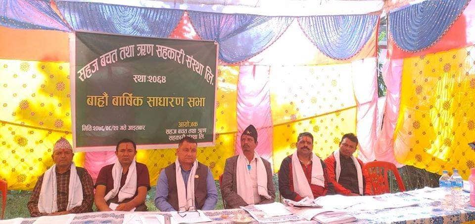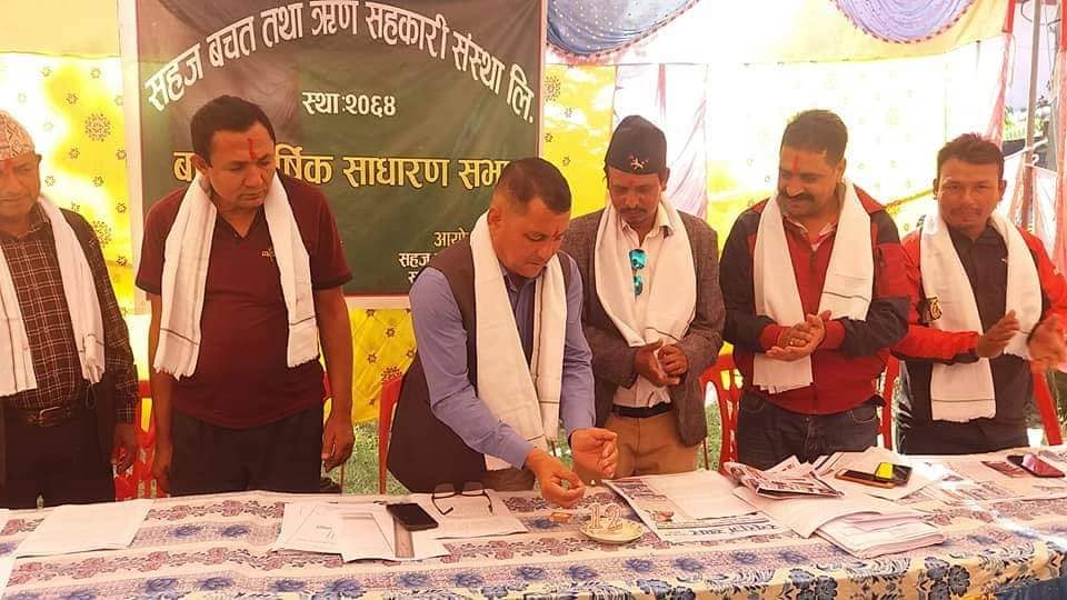 राम अवतार चौधरी,, कपिलवस्तु । सहज वचत तथा ऋण सहकारी संस्थाको १२आंै वार्षिक साधारण सभा आइतबार सम्पन्न भएको छ । जिल्लाको शिवराज नगरपालिका–५, सहजटोल स्थित चन्द्रौटामा सभा सम्पन्न भएको हो । सभा कार्यक्रमका प्रमुख अतिथी रहनु भएका प्रदेश नं. ५ का प्रदेश सभा सदस्य अर्जुन कुमार केसीले उत्पादन क्षेत्रमा लगानी गर्न सहकारी संस्थाहरुलाई आग्रह गर्नुभयो ।
