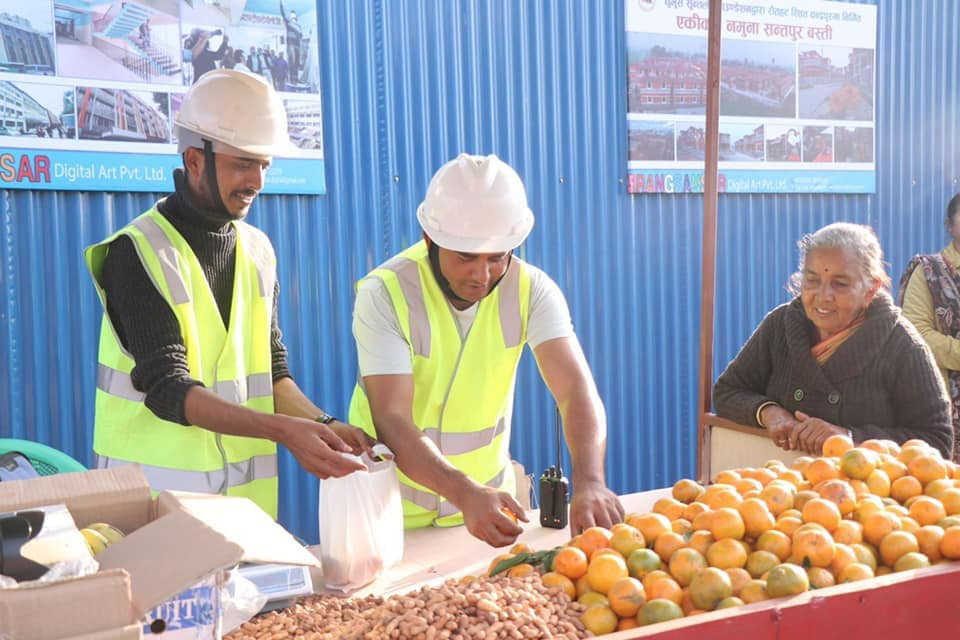 आइतबार सुरू ठेला पसलबाट संकलन भएको सबै पैसा रंगशाला निर्माणमा खर्च गर्ने उनको भनाइ छ। ‘अहिले एउटा ठेला छ। फलफूल र पानी राखेका छौं,’ धर्मुसले भने, ‘अर्को एउटा ठेला थप्दै छौं। त्यसमा सुन्तलीले म:म बेच्नेछिन्।’