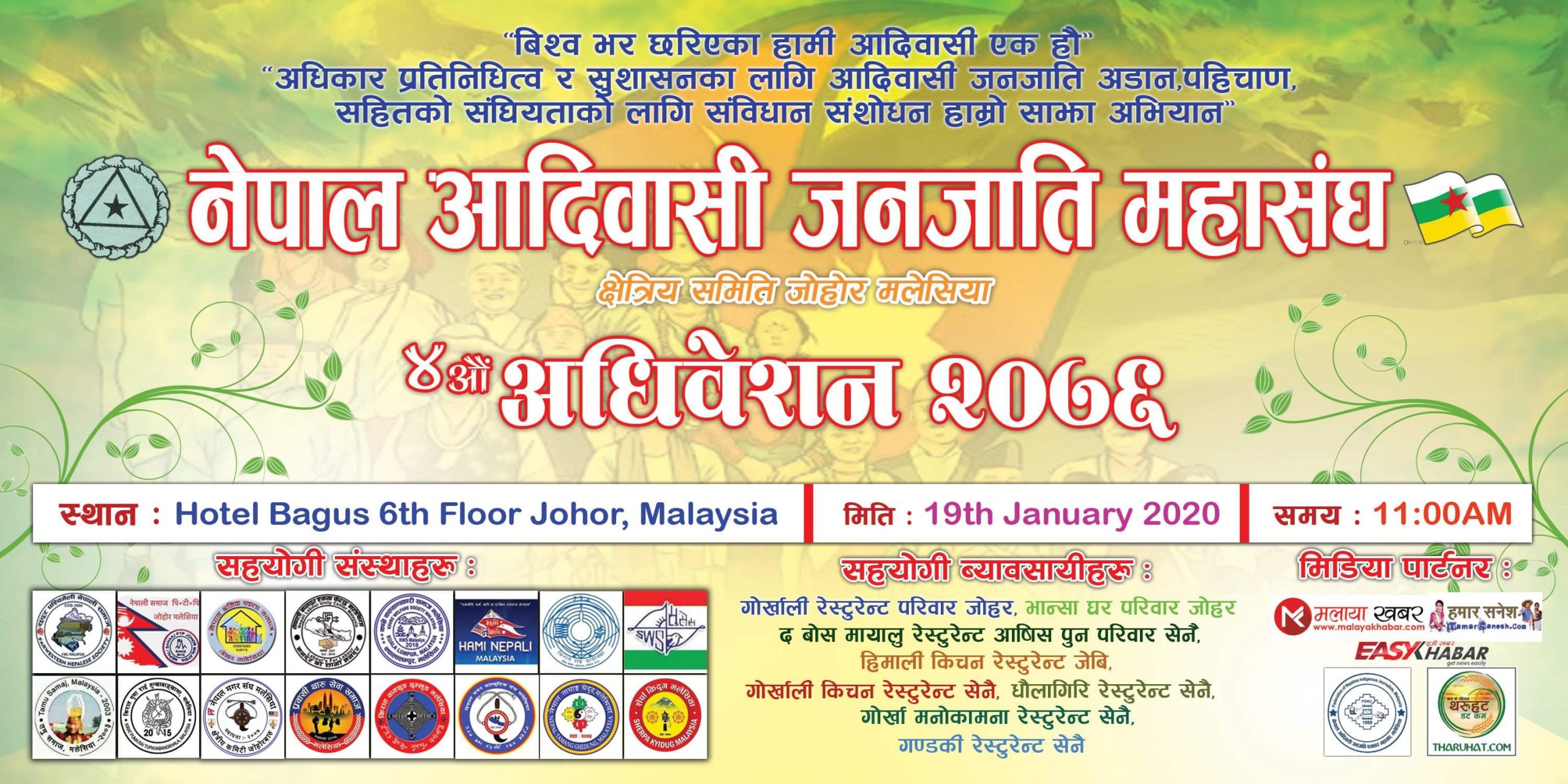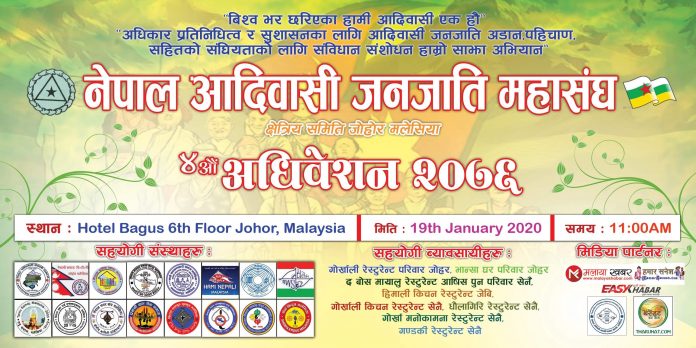 क्वालालम्पुर (मलेसिया):= नेपाल् आदिवासी जनजाती महासंघ राष्ट्रिय समन्वय समिती मलेसिया क्षेत्रीय समिती जोहोरको ४ औं अधिबेशन २०७६ कार्यक्रम आयोजना हुने भएको छ ।