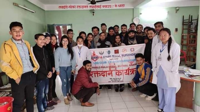 रगतको खाडलको अभाबलाई केहि मात्रमा पुरा गर्ने उदेश्यका साथ सञ्चालन गरिएको रक्तदान कार्यक्रमलाई “पहिलो पाईला नेपाल” बुटवल शाखाले पनि उक्त कार्यलाई निरन्तर्ता दिदै अाएको छ।जस्ले गर्दा रगतको अभाब बाट भौतारिएका बिरामिलाई केहि राहत हुने अपेक्षा गरिएको छ ।