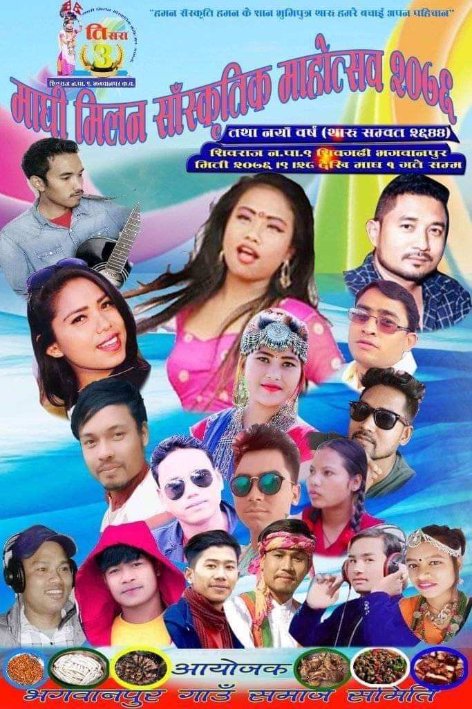 कपिलवस्तु:= कपिलवस्तुको शिवराज नगरपालिका–९, शिवगढी, भगवानपुरमा तेस्रो माघी मिलन साँस्कृतिक महोत्सव–२०७६ यहि पौष २८ गतेदेखि हुने भएको छ । भगवानपुर गाउँ समाज समितिको आयोजनामा हुना लागेको महोत्सव ३ दिन सम्म चल्ने आयोजकले जनाएको छ ।