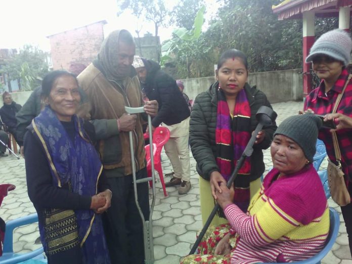 अर्काको सहयोग ताक्नु भन्दा कहिले–कहिले आफुले स्वयम प्रयास गरे अहिलेने भनेझै यस पटकको कुनै संस्थाको सहयोग नलिई बितरण गरेका छन् । वडाका ८ जनालाई सहायक सामाग्री मध्ये स्टिक बितरण गरेका हुन् । १ जनालाई सेतो छडी, १ जनालाई एल्गो कर्सेस र ५जना जेष्ठनागरीकलाई पानि फिल्टर बितरण गरेको छ । सहायक सामाग्री तथा फिल्टर नगरपालीकाकी उपप्रमुख सबिना चौधरी लगायत उपस्थित अतिथीहरुले बितरण गरेको हो ।