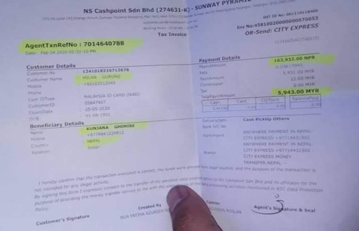 करिब ७ सय जना नेपाली कार्यरत सो कम्पनीको कामदारहरुले मलेसियन रिङ्गिट ५ हजार ९ सय ४३ आरएम , नेपाली रकम रु . १ लाख ६३ हजार ९ सय बतिस रुपैया सहयोग सङ्कलन गरि रंगशाला निर्माण अभियान्ता कुञ्जना घिमिरे (सुन्तली) को नाममा बैंक बाट ट्रान्सफर गरि सहयोग गरेको सहकर्मी गुप्ताले बताए।