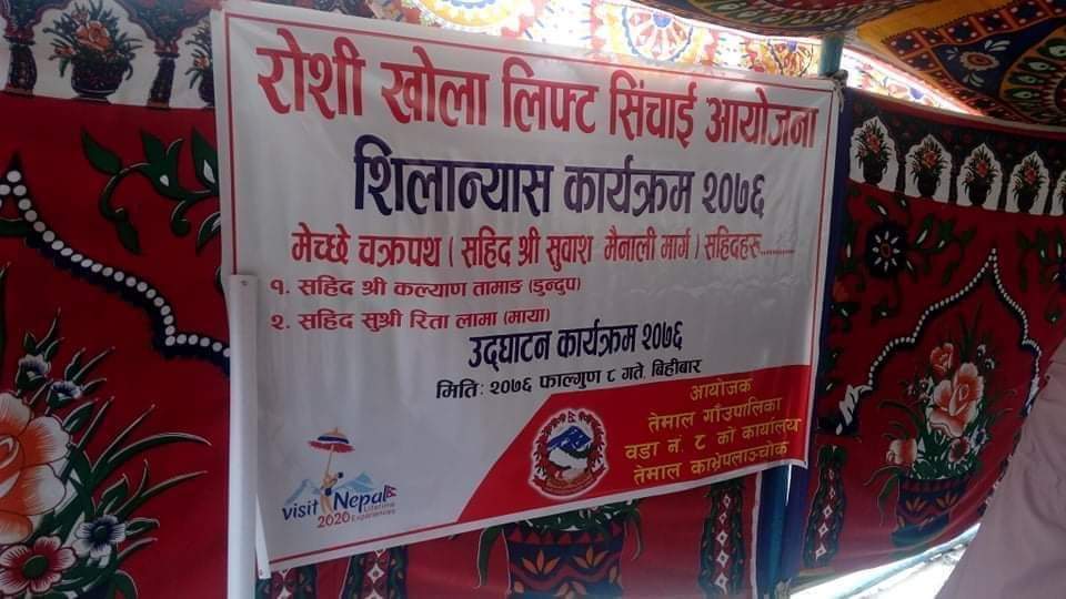 तेमाल गाउँपालिका ८ ल्होङ्साल बेसिमा एक कार्यक्रम बिच रोशी खोला सिचाई आयोजना प्रदेश आर्थिक मामिला तथा योजना मन्त्री कैलाश ढुङ्गेल अतिथिमा सिलान्यास कार्यक्रम सम्पन्न भएको छ।