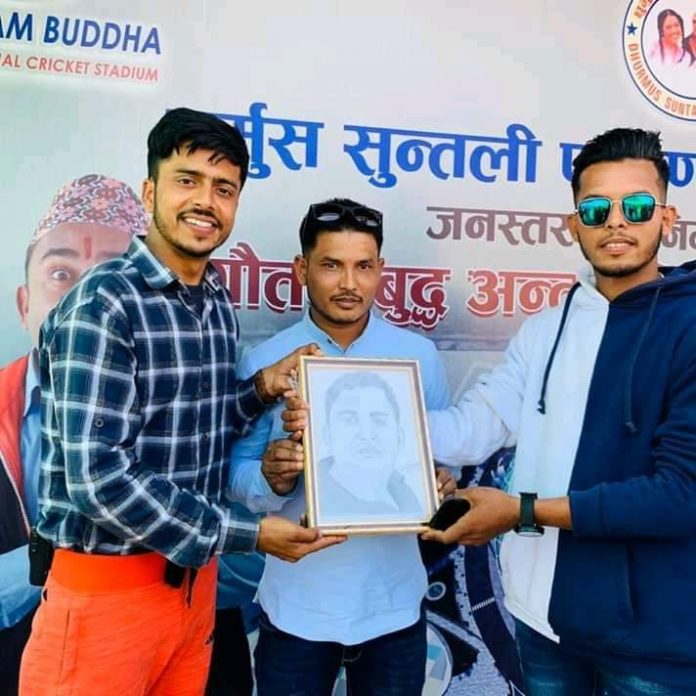 सिताराम कटेल “धुर्मुस” , अर्जुन भुसाल, आयुस न्यौपाने लगायतको आफैंले कोरेको स्केच लिई चितवन रंगशालामै गएर सो स्केचहरु अर्जुन भुषाललाई हस्तान्तरण गर्नु भएको हो भने केही आर्थिक सहयोग समेत हस्तान्तरण गरेका छ्न।