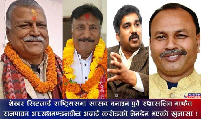 गत माघ ९ गते सम्पन्न राष्ट्रिय सभा निर्वाचनमा सांसद हुन अढाई करोड रुपैयाँ घुस बुझाएको खुलासा भएको हो । अडियो टेपमा भएको कुराकानीमा प्रदेश नं २ बाट राष्ट्रिय जनता पार्टीं (राजपा) का उम्मेदवार बनेका शेखर कुमार सिंहले अढाई करोड रुपैयाँ बुझाएर सांसद बनेको खुलासा भएको हो।