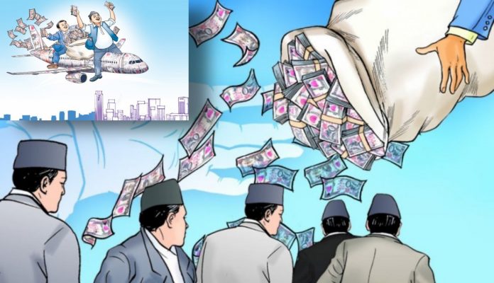 काठमाडाैँ:= को’रोना भाइरस महामारीका कारण जोखिममा परेका श्रमिकको उद्धारमा खर्चिनु पर्ने रकम मन्त्री र सरकारी कर्मचारीको विदेश भ्रमण जस्ता मोजमस्तीमा खर्च हुने गरेको पाइएको छ। वैदेशिक रोजगार ऐन, २०६४ ले रोजगारीको क्रममा महामारीजन्य समस्यामा परेकालाई उद्धार गर्न राज्य कोषको रकम प्रयोग गर्नुपर्ने व्यवस्था गरेको छ।