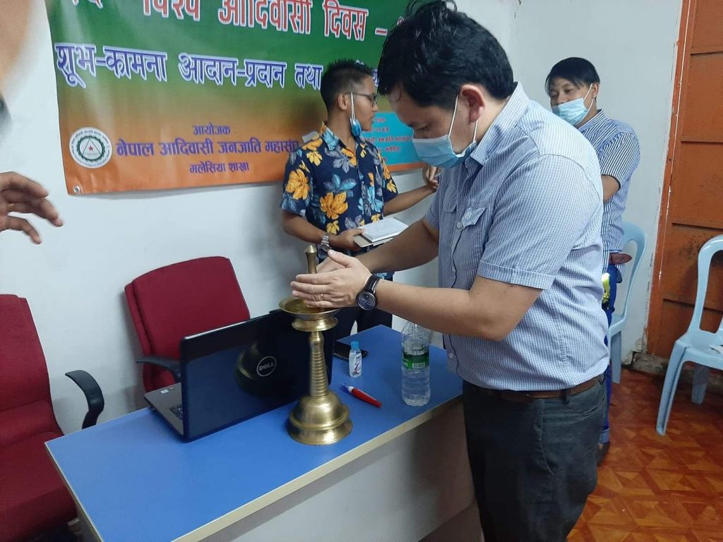 ‘पहिचान सहितको संघीयता र स्वायत्तताका लागि संविधान संशोधनको आन्दोलन हाम्रो साझा बहस ! स्वनिर्णित विकास र महा-माहामारीमा बाच्ने तथा बचाउने पक्षमा २६औ विश्व आदिवासी दिवस !!’ भन्ने मूल नाराका साथ जलान सिलाङ स्थित परदेशी रेष्टुरेन्टको माथिल्लो तलामा रहेको नेपाल आदिवासी जनजाति महासंघ मलेसियाको कार्यालय रहेको हलमा आयोजित कार्यक्रमको अध्यक्षता महासंघ मलेसियाका अध्यक्ष विपिन राईले गर्नु भएको थियो ।