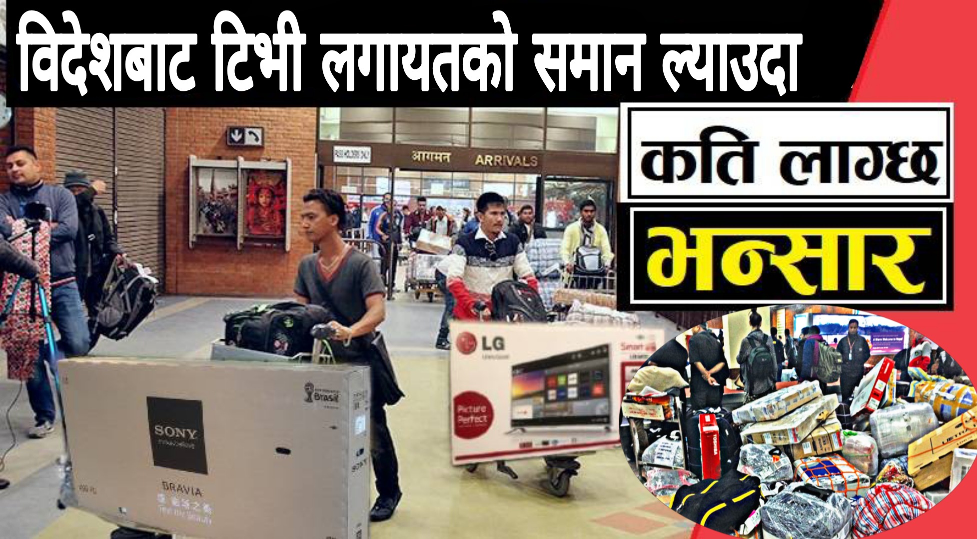 काठमाडौं:= के तपाईं विदेशबाट नेपाल फर्कदै हुनुहुन्छ या फर्कने तयारीमा हुनुहुन्छ ? वैदेशिक रोजगारीमा गएर होस् वा विदेशमा अस्थायी बसोबास गर्दै आएका नेपालीहरु स्वदेश फर्किँदा आफन्त तथा साथीभाइका लागि भन्दै महँगो ब्रान्डको रक्सीसहित टीभी, मोबाइल फोन, ल्यापटप, सुनचाँदीका गहनालगायतका सामग्री बोकेर आउने गर्दछन् ।