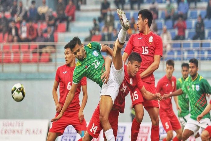 काठमाडौं := नेपालमा भइरहेको त्रिदेशीय फुटबल प्रतियोगितामा बंगलादेशले विजयी सुरुवात गरेको छ । दशरथ रंगशालामा मंगलबार साँझ भएको खेलमा बंगलादेशले किर्गिस्तानलाई १–० गोलअन्तरले पराजित गर्दै विजयी सुरुवात गरेको हो ।