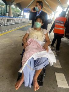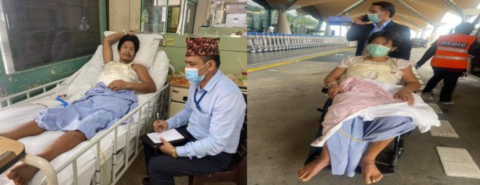 पीडित तामाङ हिलडुल गर्न नसक्ने भएको कारणले उनलाई स्वदेश फर्काउनको लागी ह्विलचेयरको सहारामा मलेसिया स्थित अन्तर्राष्ट्रिय विमानस्थल केयलआईएसम्म फ्लाईटमा चढाउनलाई दूतावासकै श्रम सहचारी प्रकाश पन्थी लगायतकोले सहकार्य गर्दै सहयोग गरेका थिए।
