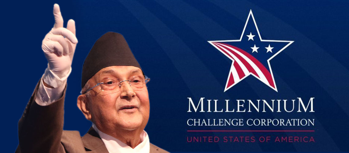 काठमाडौं := प्रतिनिधिसभा विघटन बदर र नेकपाको अस्तित्व मेटिएसँगै उत्पन्न नयाँ राजनीतिक परिस्थितिमा प्रधानमन्त्री केपी शर्मा ओलीले अमेरिकी सहयोग नियोग मिलेनियम च्यालेन्ज कर्पोरेसन (एमसीसी) सँगको सम्झौता संसद्बाट अनुमोदन गराउने कसरत जारी राखेका छन् ।