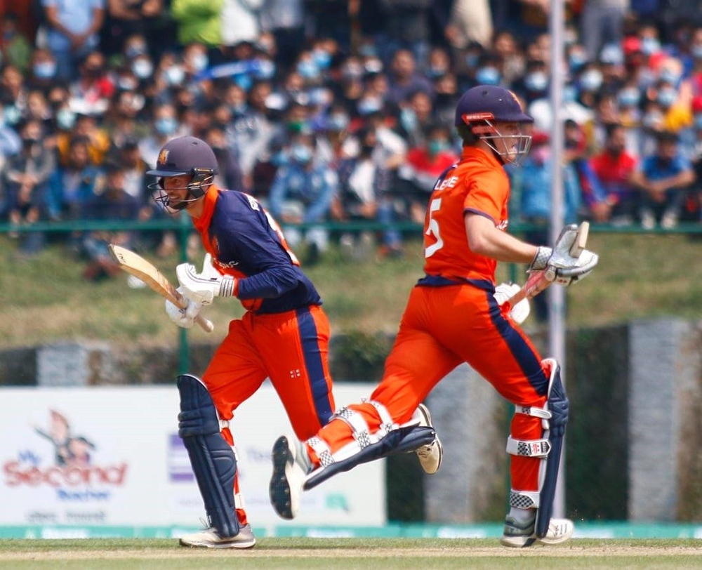 अन्तराष्ट्रिय टि–ट्वान्टीमा डेब्यु गरेका भुर्तेलले ६२ रन बनाउादा शेख ५४ रनमा तथा कप्तान ज्ञानेन्द्र मल्ल १३ रनमा अविजित रहे । त्यसअघि टस जितेर पहिले ब्याटिङ गरेको नेदरल्याण्ड्सले २० ओभरमा चार विकेट गुमाउँदै एक सय ३५ रन बनाएको थियो ।