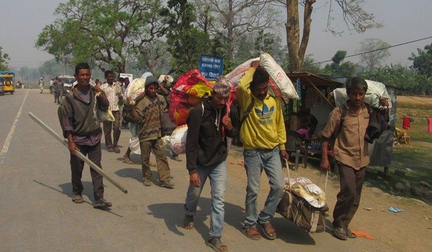 काठमाडौं:= कामको खोजीमा दुई महिनाअघि भारतको पुना पुगेका अछाम चौरपाटीका मानबहादुर साउद आइतबार कैलालीको त्रिनगर नाका हुँदै घर फर्किएका छन् । होटेलमा वेटर उनले आगामी दसैँमा घर फर्कने सोच बनाएका थिए । तर, महाराष्ट्रमा कोरोना संक्रमण बढेसँगै लकडाउनका कारण जागिर गुमेपछि उनी दुई महिनामै घर फर्कन बाध्य भए ।