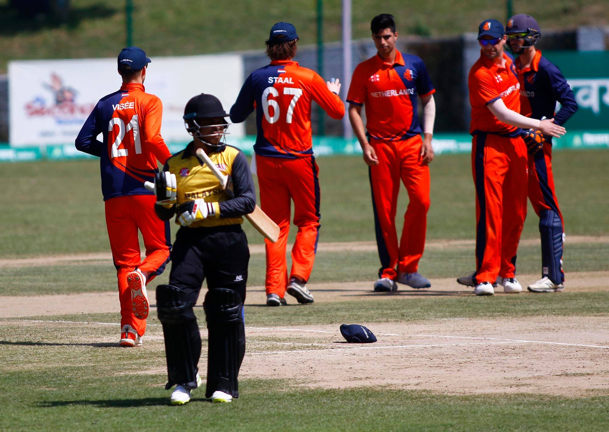 काठमाडौं := त्रिकोणात्मक टी–ट्वान्टी सिरिज अन्तर्गत आज नेदरल्यान्ड्स र मलेसिया भिड्दैछन् । टियु क्रिकेट मैदानमा हुने खेल अपरान्ह १२ः१५ बजे सुरु हुनेछ ।