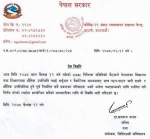 काठमाडौं:= कोभिड–१९ संकट व्यवस्थापन केन्द्र सीसीएमसीले सोमबारदेखिका सबै परीक्षा स्थगित गर्न सरकारलाई सिफारिस गरेको छ । आइतबार बसेको बैठकले सोमबारदेखि भौतिक रुपमा उपस्थित भएर सञ्चालन गरिने विद्यालय, विश्वविद्यालयका परीक्षा स्थगित गर्न सिफारिस गरेको सीसीएमसी स्रोतले जानकारी दिएको छ ।