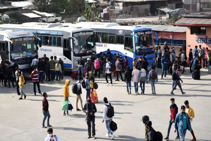काठमाडौं:= गोङ्गबुस्थित नयाँ बसपार्कमा घर जाने यात्रुको भीडभाड बढेको छ । जिल्ला प्रशासन कार्यालय काठमाडौँ, भक्तपुर र ललितपुरका प्रमुख जिल्ला अधिकारीको सोमबार बसेको संयुक्त बैठकले वैशाख १६ गते बिहानदेखि काठमाडौँ उपत्यकामा एक हप्ता निषेधाज्ञा लगाउने निर्णय गरेसँगै घर जाने यात्रुको सङ्ख्यामा वृद्धि भएको हो ।