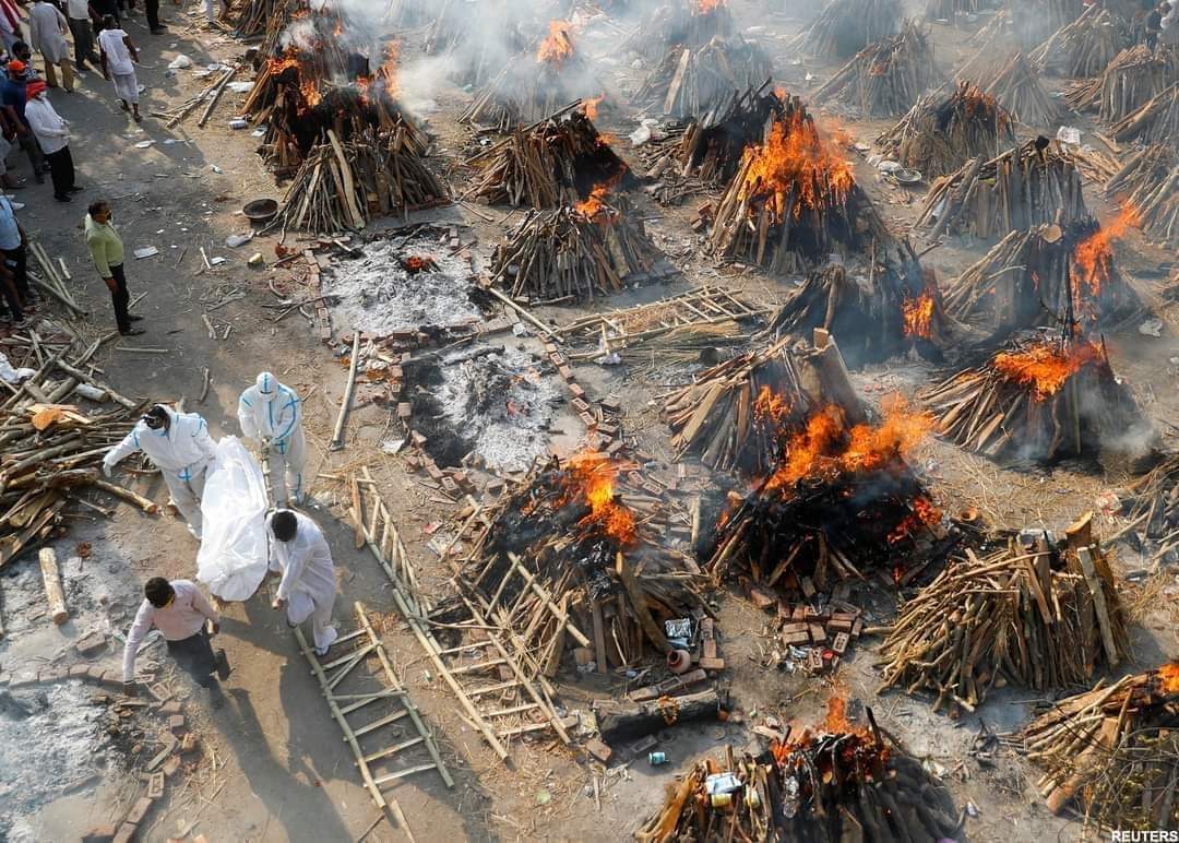अस्पतालहरुमा आईसीयू, भेन्टिलेटर, अक्सिजन तथा औषधिको अभाव भइरहेको छ । भारतमा अहिलेसम्म एक कराेड ७९ लाख भन्दा धेरैलाई कोरोना भाइरसको सङ्क्रमण भएको छ । भारतमा हाल २९ लाख ७२ हजार बढी एक्टिभ केस रहेको बताइएको छ। photo source : Reuters
