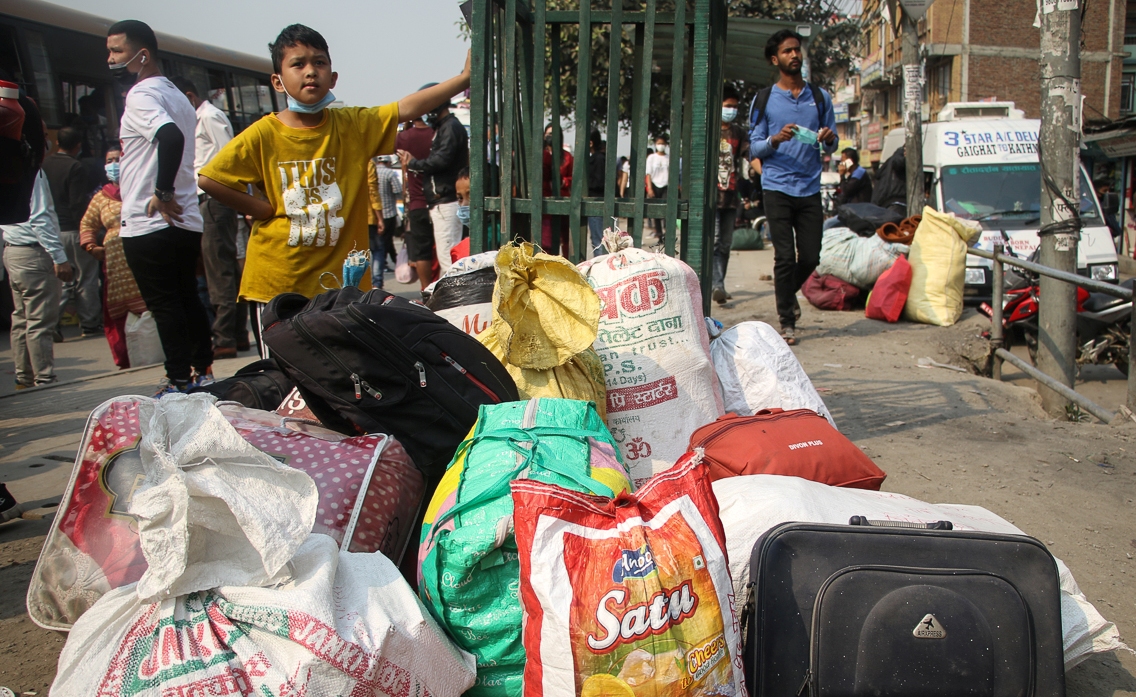 काठमाडौं := कोरोना संक्रमणको दोस्रो लहर देखा परेपछि सरकारले राजधानी उपत्यकामा निषेधाज्ञा जारी गरेपछि राजधानीबाट बाहिरीनेको भिड अत्याधिक बढेको छ ।