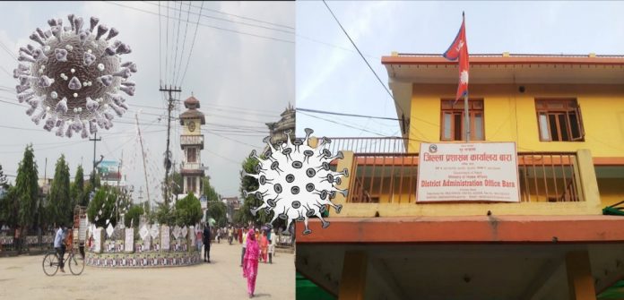 बारा:= कोरोना संक्रमण तिब्र रुपले फैलिरहेको जनाउँदै जिल्ला प्रशासन कार्यालय बाराले बिहिवार देखि लागु हुने गरी निषेध आदेश जारी गरेको छ । जिल्लामा रहेको जिल्ला कोभिड–१९ संकट व्यवस्थापन केन्द्र (डीसीसीएमसी) मार्फत निर्णय गर्ने गरी प्रमुख जिल्ला अधिकारीलाई निषेधाज्ञाको अधिकार दिइएको छ।