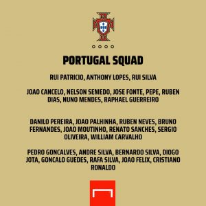 प्रशिक्षक सान्तोषले भेट्रान रोनाल्डोसँगै पेपे, रुइ प्याट्रिसियो र जोओ मौटिन्होलाई टोलीमा समेट्दा युवा खेलाडी जोआओ फेलिक्स, पेड्रो नेटो र डिएगो जोटालाई पनि टोलीमा समेटेका छन् । प्रशिक्षक सान्तोषको टोलीमा इंग्लिस क्लब वल्भ्सबाट सबैभन्दा बढी चार खेलाडीले स्थान बनाएका छन् ।