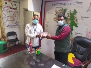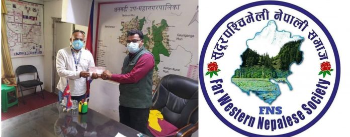 सुदूरपश्चिमेली नेपाली समाज अन्तर्राष्ट्रिय समितिका नेपाल संयोजक चेतन बहादुर थापाको नेतृत्वमा सोमबार धनगढी उपमहानगरपालिका को कार्यालयमा उपस्थिति भएर चेक हस्तान्तरण गर्नु भएको हो ।