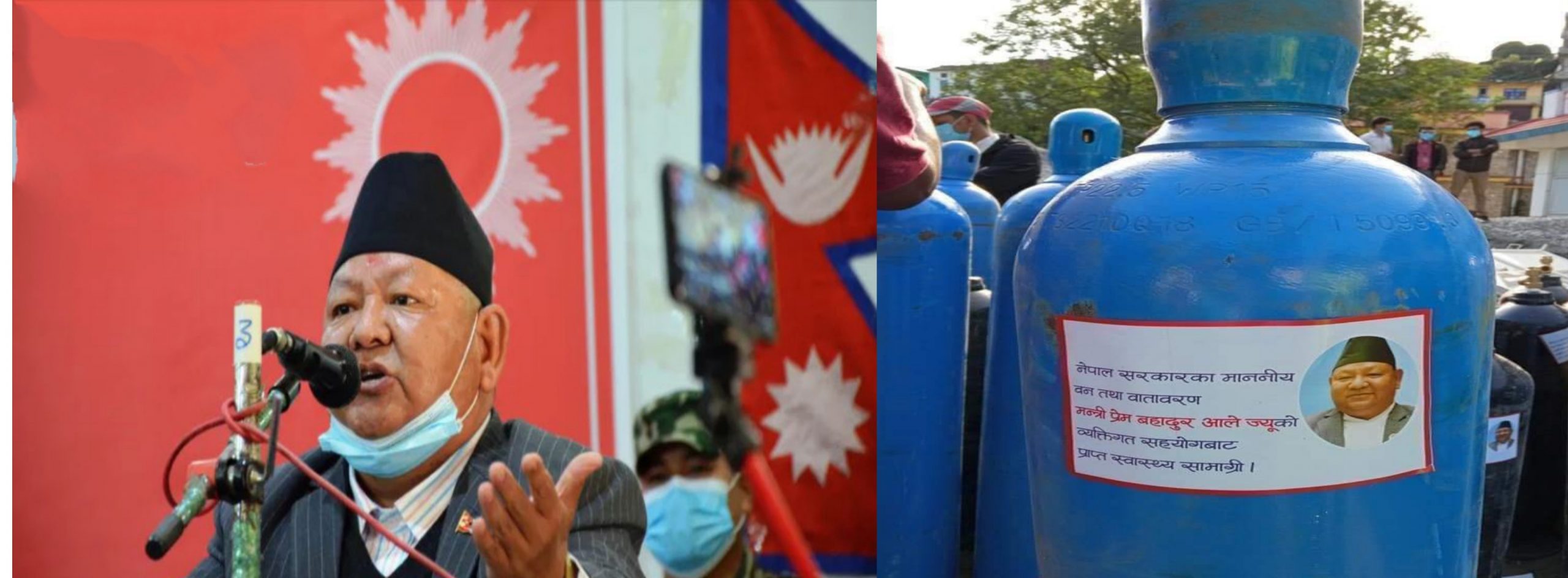 काठमाडौँ:= वन तथा वातावरणमन्त्री प्रेमबहादुर आलेले जिल्ला अस्पताल डोटीमा वितरण गरिएका ७५ अक्सिजन सिलिण्डरमध्ये १५ वटा स्वास्थ्य सेवा विभागले प्रदान गरेको र ६० वटा आफूले ब्यक्तिगत किनेर सहयोग दिएको स्पष्ट गर्नुभएको छ । सेती प्रादेशिक अस्पताल कैलालीमा आज अक्सिजन सिलिण्डर वितरण कार्यक्रममा मन्त्री आलेले विदेशीले दिएको नभई आफ्नै खर्चमा किनिएको बताउनुभयो ।