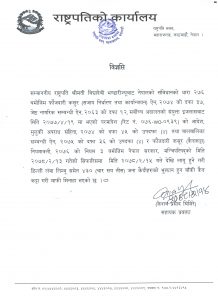 काठमाडौं := राष्ट्रपति विद्यादेवी भण्डारीले मन्त्रिपरिषद्को सिफारिसमा १४ औँ गणतन्त्र दिवसका अवसरमा ४ सय ३० कैदीको भुक्तान हुन बाँकी कैद कट्टा गरी माफी मिनाहा गरि दिनुभएको छ ।
