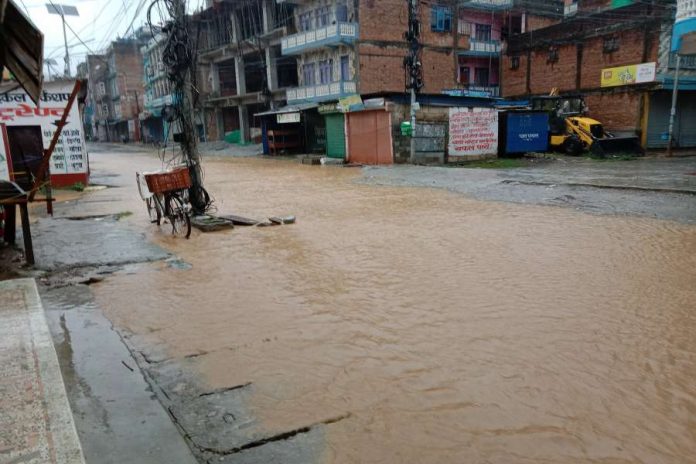 बागलुङ := बर्खामा मात्र होइन, हिउँद महिनामा समेत भारी वर्षा हुँदा बागलुङ बजार जलमग्न हुन्छ । बागलुङ बजारको विभिन्न चोकहरूमा ढलको पानी सडकबाट बग्छ । भलसँगै आएको पानी सडकमा मात्रै ताल बन्दैन, बजारवासीको घर, पसलभित्रै पुग्छ ।