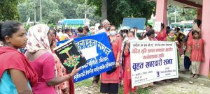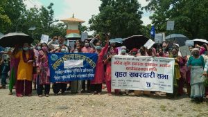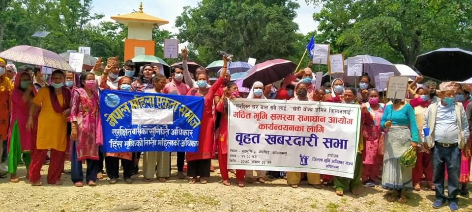 जिल्ला भूमि अधिकार मञ्च कपिलवस्तुको आयोजनामा शनिबार गाेरुसिंगेमा भएको विरोध प्रदर्शनमा प्रदर्शनकारीले सरकार विरुद्ध नाराबाजी गर्दै आयोग पुन:र्स्थापित नभएसम्म आन्दोलन गरिरहने अध्यक्ष थारुले बताए । आयोगमा भूमि अधिकार मञ्चको प्रतिनिधित्व निश्चित गर, भूमि सम्बन्धी स्थानीय सरकारको काम सुचारु गर, लगत संकलन नाप जाँच र पुर्जा वितरण लागु गर, अव्यबस्थित बसोवासीलाई पुर्जा देउ, त्यसैगरी भूमि सम्बन्धी आयोग तत्काल गठन गर, भूमिहिनलाई पटक पटक दुःख नदेउ, संयुक्त लालपुर्जा कायम गर र स्वेच्छाचारी देउवाको सरकार चाहिँदैन लगायतका नारा लेखिएका प्लेकार्ड सहित लालपुर्जा विहिन नागरिक विरोध प्रदर्शनमा उत्रिएकाे भूमि अधिकार मञ्च जिल्ला सचिव मन्जु थारुले जानकारी गराइन् । गोरुसिंगे अर्घाखाँची चोक देखि गोरुसिंगे बजार क्षेत्र परिक्रमा गरि विराेध कार्यक्रम कोण सभामा परिणत भएको समेत सचिव थारुले बताइन् ।