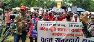 कपिलवस्तु:= भूमि सम्बन्धी समस्या समाधान आयोग खारेज विरुद्ध कपिलवस्तुमा विरोध प्रदर्शन गरिएको छ । “सुरक्षित घर बास सबैलाई, “खेतीयोग्य जमिन किसानलाई” भन्ने मुल नाराका साथ गठित भुमि समाधान कार्यान्वयनका लागि बृहत खबरदारी अन्तर्गत प्लेकार्ड सहित आयोग खारेज विरुद्ध विरोध गरिएको भूमि अधिकार मञ्च कपिलवस्तुका अध्यक्ष निरुपत थारुले जानकारी दिए ।