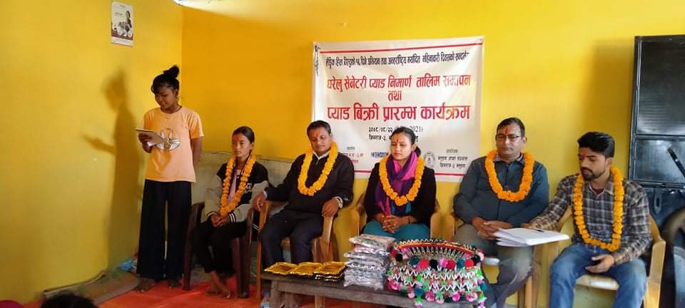 लैंगिक हिंसा विरुद्धको १६ दिने अभियान तथा अन्तर्राष्ट्रिय महिनवारी दिवसकाे सन्दर्भमा घरेलु सेनेटरी प्याड निर्माण तालिम समापन तथा प्याड बिक्री प्रारम्भ कार्यक्रमलाई