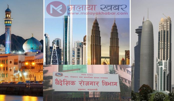 सरकारले नेपाली श्रमिक जाने गन्तव्य मुलुक मलेसिया, कतार, युएई, साउदी अरेबिया, माल्दिभ्सका ६५ वटा रोजगारदाता कम्पनी र नेपालका तीन सय म्यानपावर कम्पनीलाई कालोसूचीमा राखेको छ ।