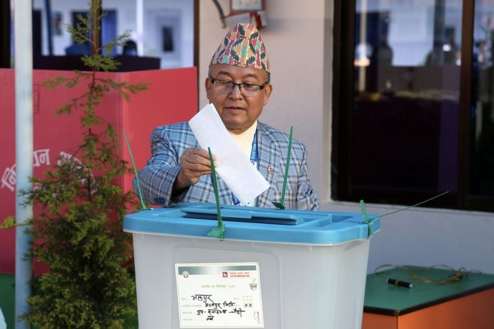 काठमाडौं := प्रमुख निर्वाचन आयुक्त दिनेश थपलियाले भक्तपुरको मध्यपुरथिमि–१ लोकन्थलीस्थित उपस्वास्थ्यचौकी मतदानस्थलबाट मतदान गरेका छन् । थपलियाले बिहान ७ बजे उक्त मतदानस्थलको ख केन्द्रमा मतदान गरेका हुन् ।