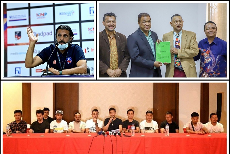 (३) एकै पटक ९ जना खेलाडी क्याम्प छाडेर जानुमा मुख्य प्रशिक्षक, व्यवस्थापक तथा एन्फा सचिवालयको पनि अवश्य केही त्रुटी छन्। मुख्य प्रशिक्षकको स्वास्थ्य स्थितिले गर्दा उत्तेजक र तनावमा देखिनु, स्वास्थ्य परीक्षणको लागि विदा स्वीकृत रहेको अवस्था, फरक सामाजिक र सांस्कृतिक परिवेश, बारम्बार विवाद, तथा सामाजिक संजालमा अनावश्यक टिकाटिप्पणी जस्ता कृयाकलापले गर्दा राष्ट्रिय टिममा स्वच्छ वातावरण नभएको देखिन्छ। यस्तो अवस्थामा भविष्यमा अरु समस्या उब्जने प्रवल संभावनालाई समेत नकार्न सकिँदैन। तसर्थः एसिया कप छनौट प्रतियोगिता पछि कतार एफ.ए.संगको सहयोगलाई निरन्तरता र सहमती कायम राख्दै मुख्य प्रशिक्षकको अर्को विकल्प खोज्न सिफारिस गरिन्छ।