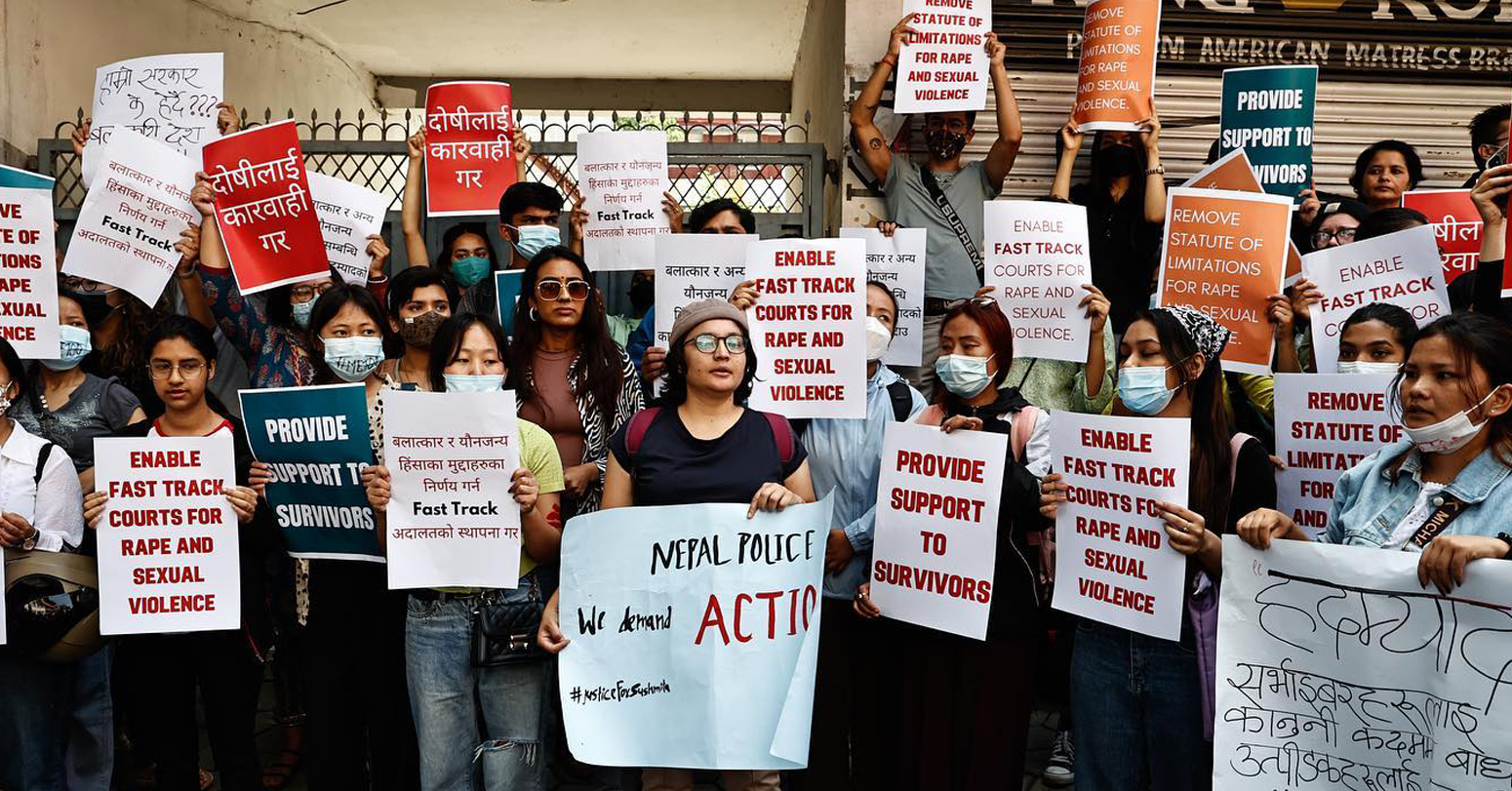 बलात्कारका घटनामा संलग्नलाई कारबाही र पीडितलाई न्याय दिन माग गर्दै काठमाडौंमा प्रदर्शन गरिएको छ । शुक्रबार बालुवाटारस्थित प्रधानमन्त्रीको सरकारी निवासनजिकै स्वस्फूर्त प्रदर्शनमा उत्रिएका युवायुवतीले बलात्कार र यौनजन्य हिंसासम्बन्धी कानुनमा हदम्यादको व्यवस्था हटाउन र दोषीलाई कारबाही गर्न माग गरेका छन् । प्रदर्शनमा सहभागीहरूले यौन हिंसामा परेकी किशोरीलाई न्याय दिलाउने पहलकदमी लिन प्रधानमन्त्री शेरबहादुर देउवालाई आग्रह गरेका छन् । उनीहरूले मुलुकी अपराधसंहिता २०७४ मा बालबालिकासम्बन्धी ऐनले तोकेको हदम्यादको व्यवस्था हटाउन जोडदार माग गरेका हुन् ।
