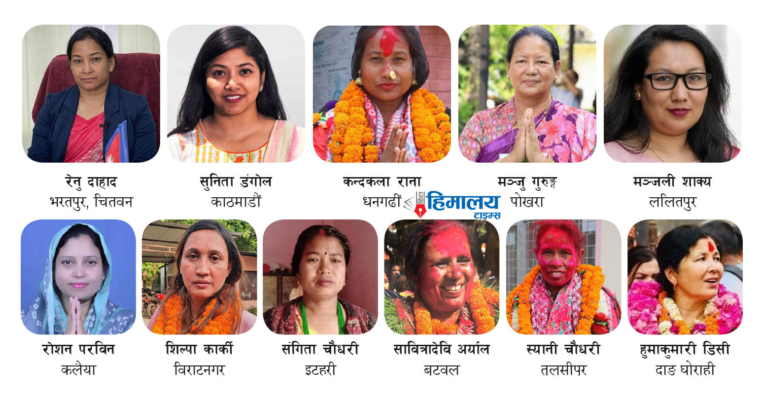 मुलुकका ६ महानगरमध्ये एउटामा मात्रै महिला मेयर निर्वाचित भएका छन् । चितवनस्थित भरतपुर महानगरमा रेनु दाहाल मेयरमा निर्वाचित हुनुभएको हो । यसअघि पनि भरतपुरको नेतृत्व गरिसक्नुभएकी उहाँ नेकपा (माओवादी केन्द्र)बाट उम्मेदवार बन्नुभएको थियो । महानगरको नेतृत्व गर्ने उहाँ एक्लो महिला हुनुहुन्छ । भरतपुरबाहेक अन्य पाँच महानगरमा भने पुरुष मेयर निर्वाचित हुनुभएको छ ।